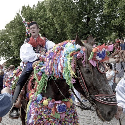 S letnicemi, svátky přechodu jara a léta, jsou odedávna spojeny královské svatodušní průvody, na Slovácku zvané jízda králů.